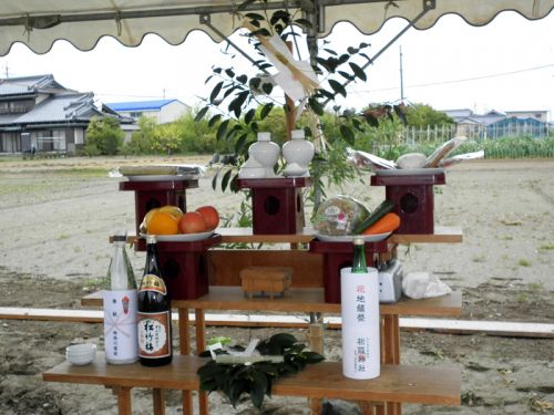 地鎮祭。雨天でしたが、無事に執り行うことが出来ました。